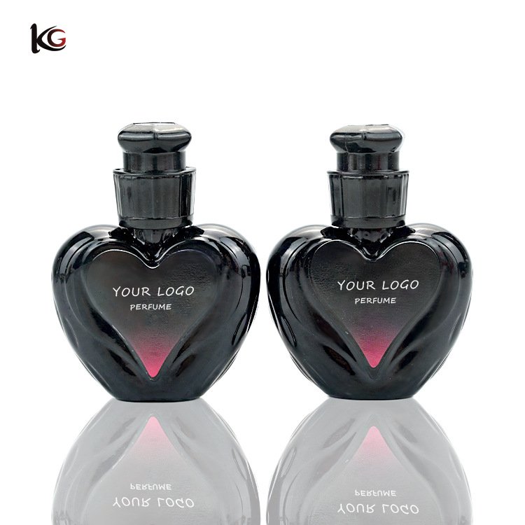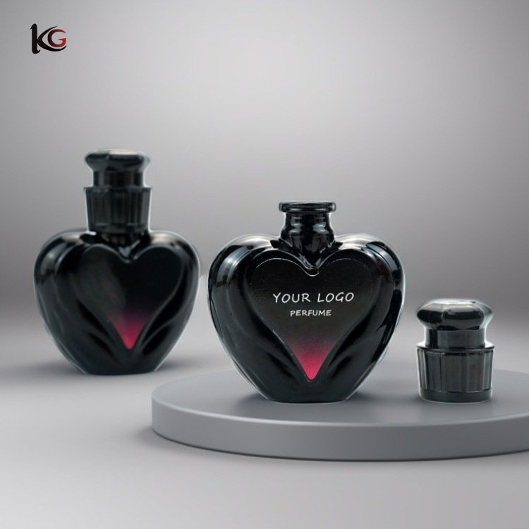 WP15ml small glass heart-shaped perfume bottle, empty bottle can be labeled with logo, sprayed in black, press-type spray nozzle.