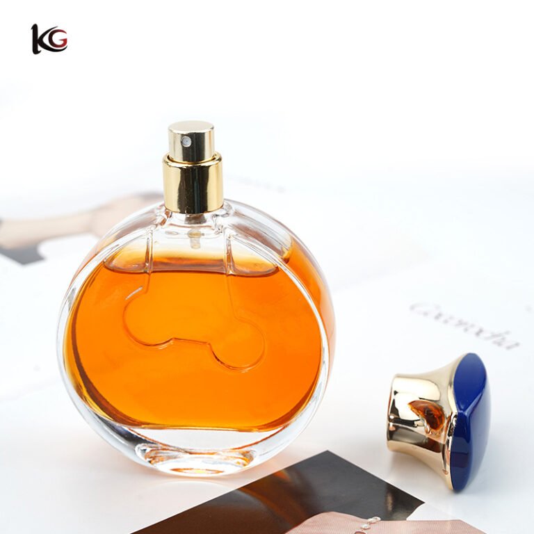 50ml/100ml clear glass cap perfume bottle, press-type palm-label spray cosmetic dispenser